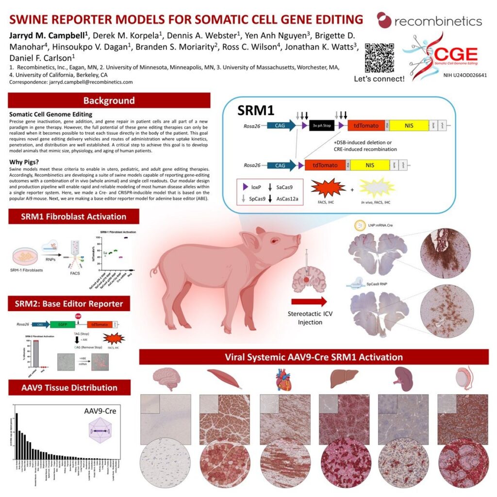 We’re in Baltimore for ASGCT 2024! Stop by poster #517 on Wednesday, May 8th at 5:30 EST to hear from Jarryd Campbell about our swine reporter models for somatic cell genome editing. We are looking forward to making some new connections and meeting up with old colleagues.